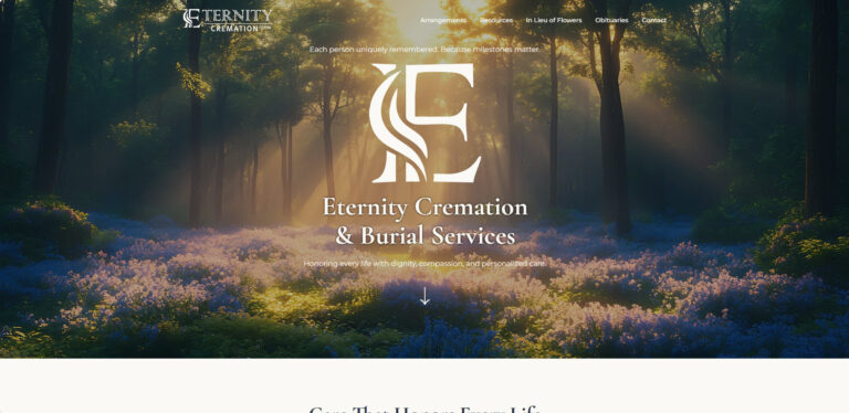 The finished site at eternitycremation.net presents a respectful, trustworthy, and polished online presence that supports the company’s new name and mission while honoring the families they serve.